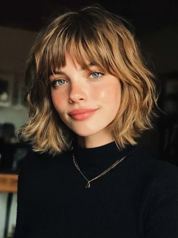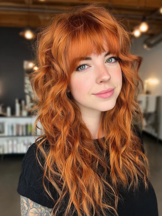 Wolf cuts with colored bangs blend rebellious texture with playful artistry, creating a look that feels modern yet expressive. The signature choppy layers frame the face while keeping movement through the crown and ends, but the real star is the vibrant fringe. Whether you choose pastel pink, electric blue, copper, or neon green, tinted bangs …