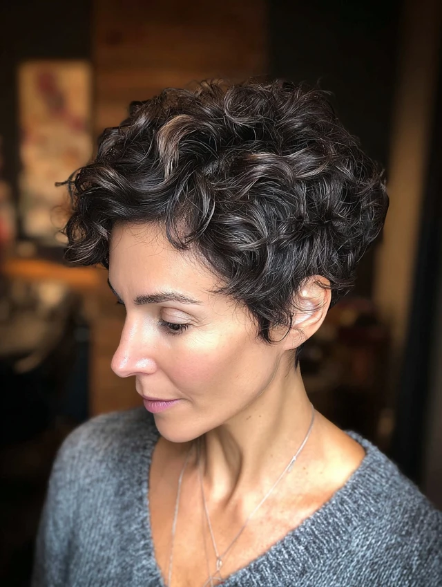 Curly Pixie With Highlighted Curls