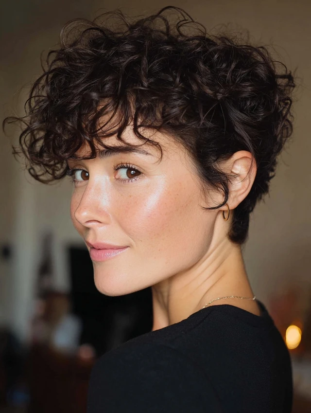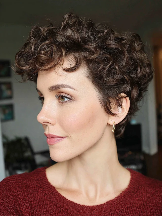 Curly Pixie With Side-Swept Bangs