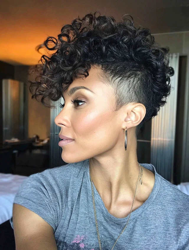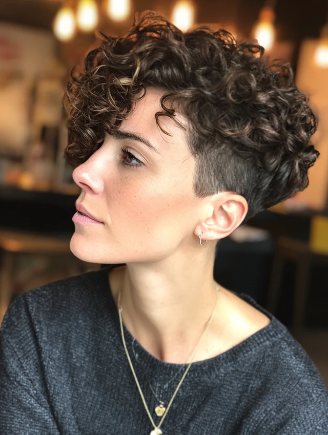 Curly Pixie With Shaved Sides