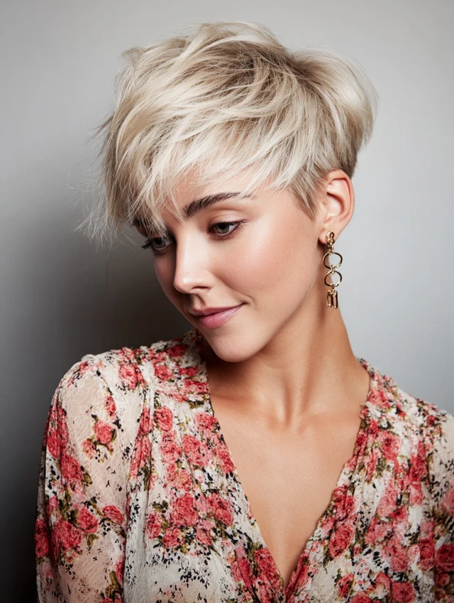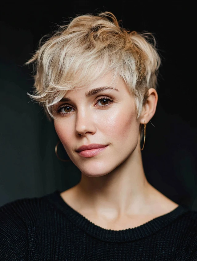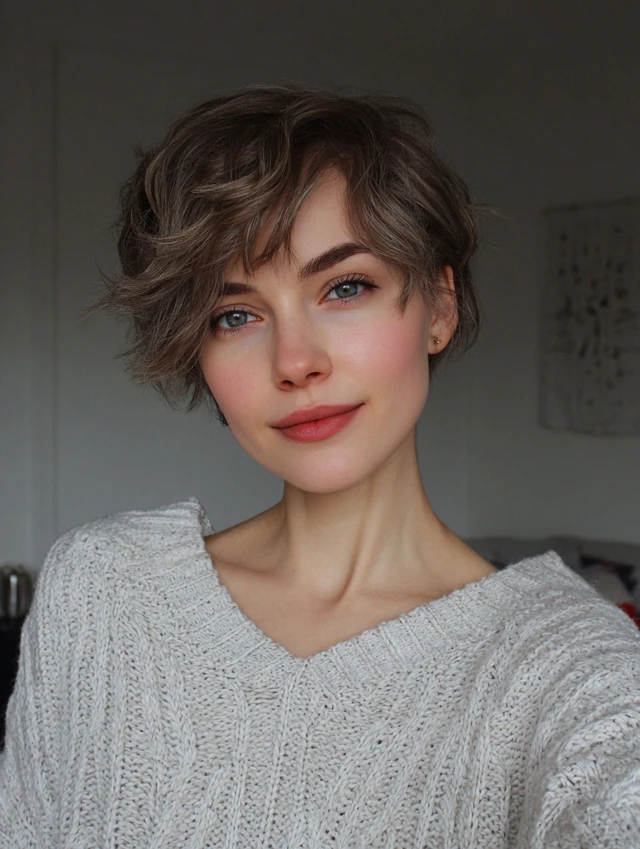 3. The Textured Pixie with Side-Swept Fringe