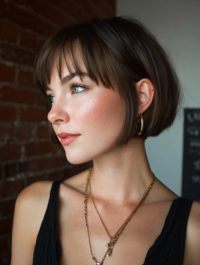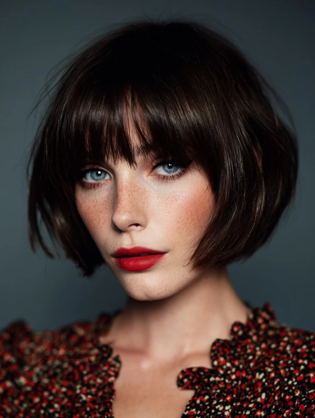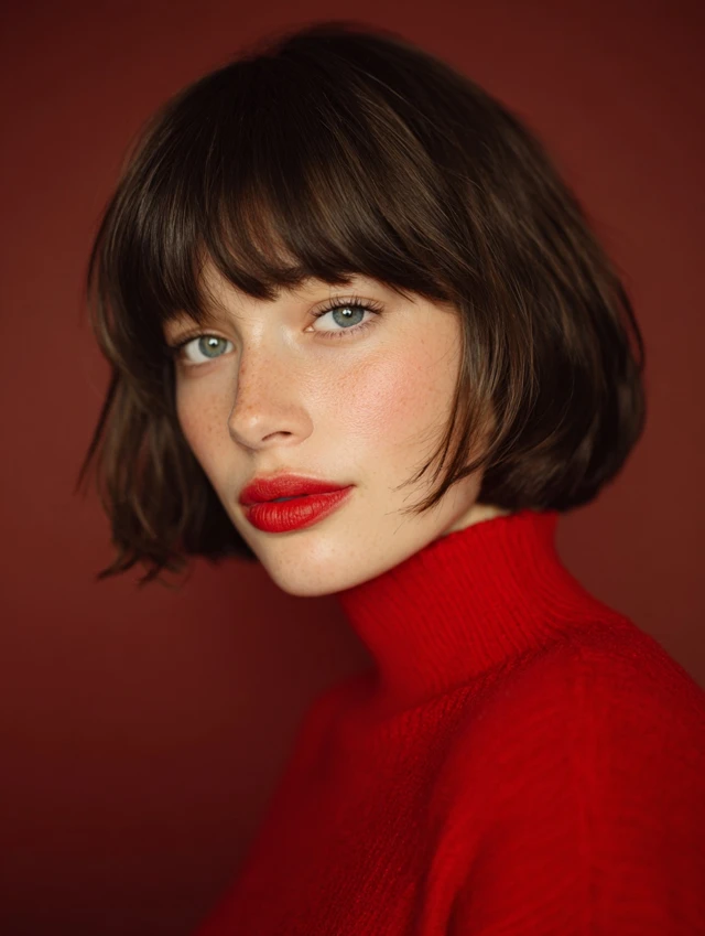 Why It Works: This is the ultimate “Parisian chic” look. The blunt line at the chin creates a beautiful frame for the face, and the bangs add a youthful, playful touch.