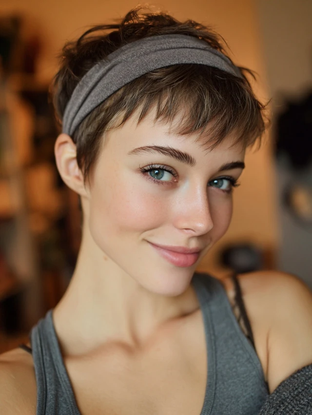 Short hair makes gym hairstyles fast, practical, and comfortable.
