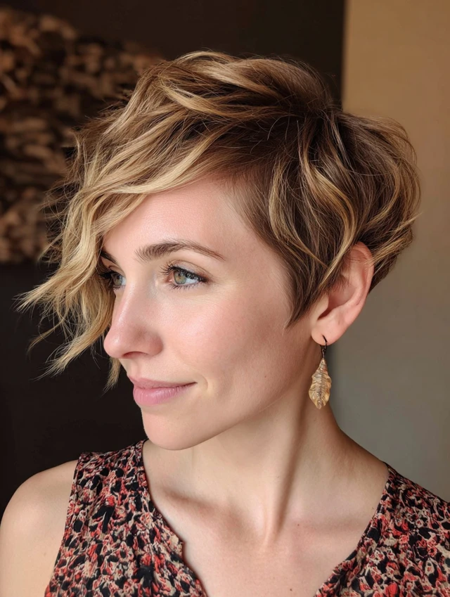A deep side part instantly adds drama, while uneven layers create lift and definition through the top. The asymmetry flatters many face shapes by drawing attention upward and elongating features. Volumizing spray at the roots keeps hair buoyant without crunch. Because the layering remains light, strands settle easily into place after washing. This option suits straight to wavy textures and anyone wanting a slightly bolder look that still feels wearable for everyday routines.