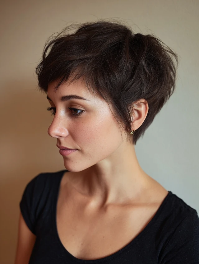 Short, visible layers deliver bold texture and undeniable personality in this modern take. The crown receives extra lift, while uneven ends encourage separation and grit. Styling paste adds definition without stiffness, letting the haircut look intentionally undone. Growth patterns stay forgiving because the shape relies on texture rather than precision lines. Best for medium to thick hair, this version suits confident wearers who enjoy statement looks while keeping maintenance surprisingly low day to day.