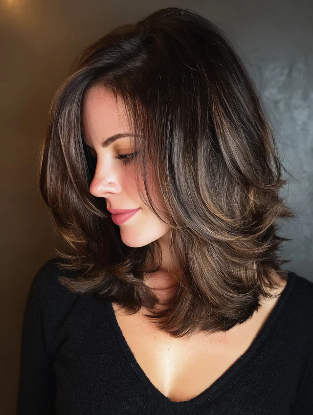 Feathered tips that flip outward give this style movement and a hint of retro charm. Layers through the mid-lengths prevent heaviness, while the outline stays light and bouncy. A round brush or curling iron at the ends creates that signature flick quickly. The rest of the hair remains soft and touchable, never stiff. This look suits straight to wavy textures well, offering playful energy and visual interest without sacrificing everyday wearability.