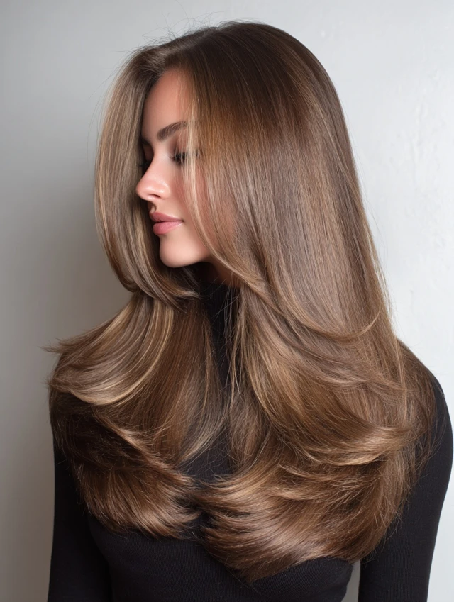 Strategic face-framing layers transform this long wolf cut into a flattering, customizable style for many face shapes. Shorter pieces curve along the cheekbones, while longer sections blend into the dramatic back length seamlessly. Volume concentrates near the crown, creating lift without sacrificing sleekness through the ends. Styling becomes intuitive because the layers guide hair into place naturally. People who like subtle contouring around their features will enjoy how this cut highlights bone structure while remaining flexible for waves or straight finishes.