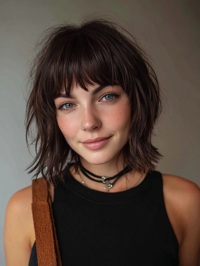 Heavy density benefits from this shag-leaning wolf cut because internal layering removes weight without thinning the ends. Shorter crown pieces lift roots naturally, preventing flatness even between washes. Wispy, disconnected sections around the face add softness while keeping the rebellious edge intact. Styling products distribute easily through the staggered layers, creating movement instead of puffiness. Those with abundant hair will appreciate how manageable the shape feels while still delivering bold, fashion-forward attitude every day.