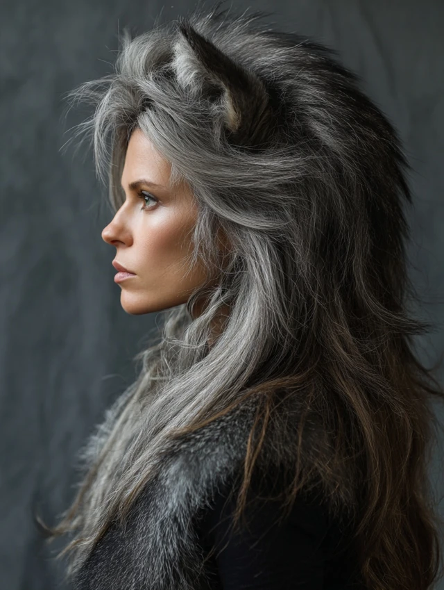 Extra lift defines this bold long wolf cut, making it ideal for anyone craving noticeable height and drama. Graduated crown layers stack upward, while heavily textured mid-lengths prevent the style from collapsing throughout the day. Ends remain wispy instead of blunt, ensuring movement with every turn of the head. Root spray or mousse amplifies the built-in structure quickly. Those with medium-density hair will love how effortlessly full the silhouette looks, even after minimal styling or second-day refresh routines.