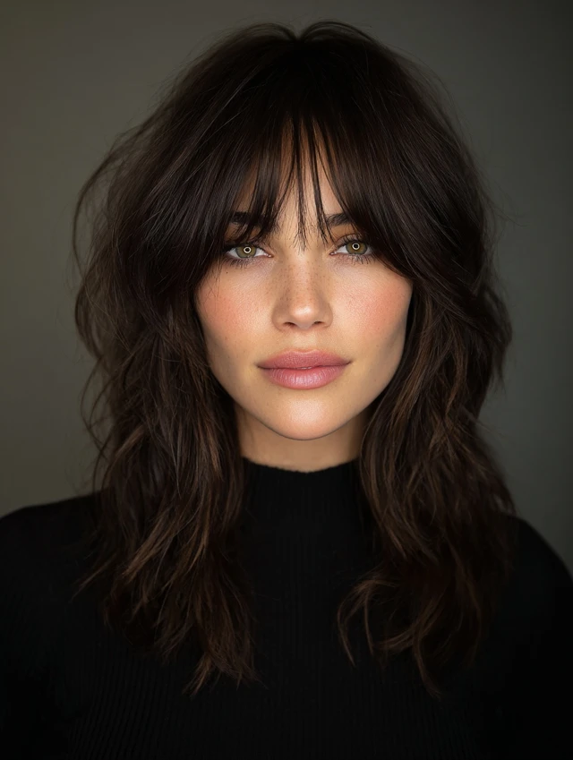 A shag cut plus curtain bangs adds modern, edgy texture.