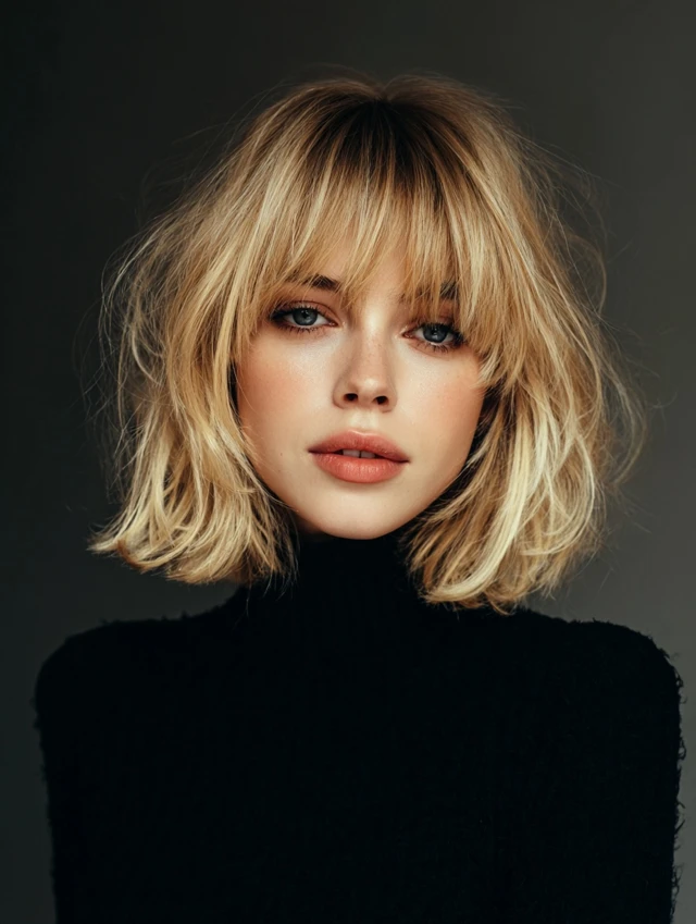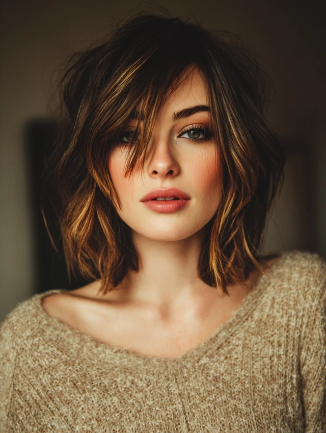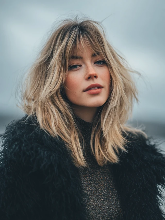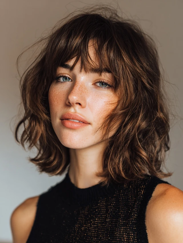 Tousled Curtain-Bang Shaggy Lob