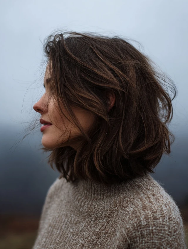 Tiny, strategically placed layers define this refined take on the shaggy lob, creating movement without obvious choppiness. The shape looks polished at first glance, yet still feels airy and modern when styled casually. Face-framing pieces remain soft, helping contour cheekbones and jawlines naturally. Blow-drying with a paddle brush smooths the surface, while a dusting of texture spray revives separation. This option suits people who want subtle edge without sacrificing sophistication or clean lines.