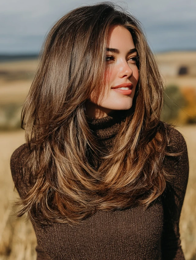 Soft Layered Shaggy Lob with Side Sweep