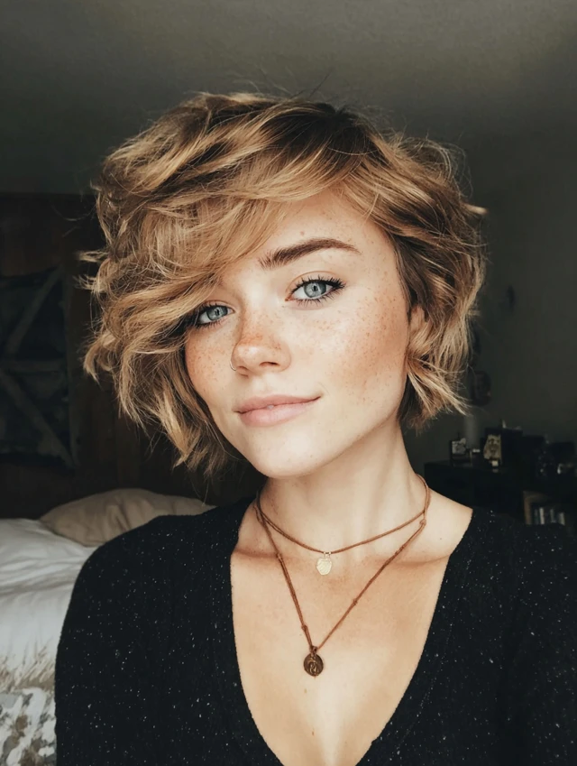 If your hair has natural waves—or you love loose, beachy styles—short wavy cuts are a great choice.
